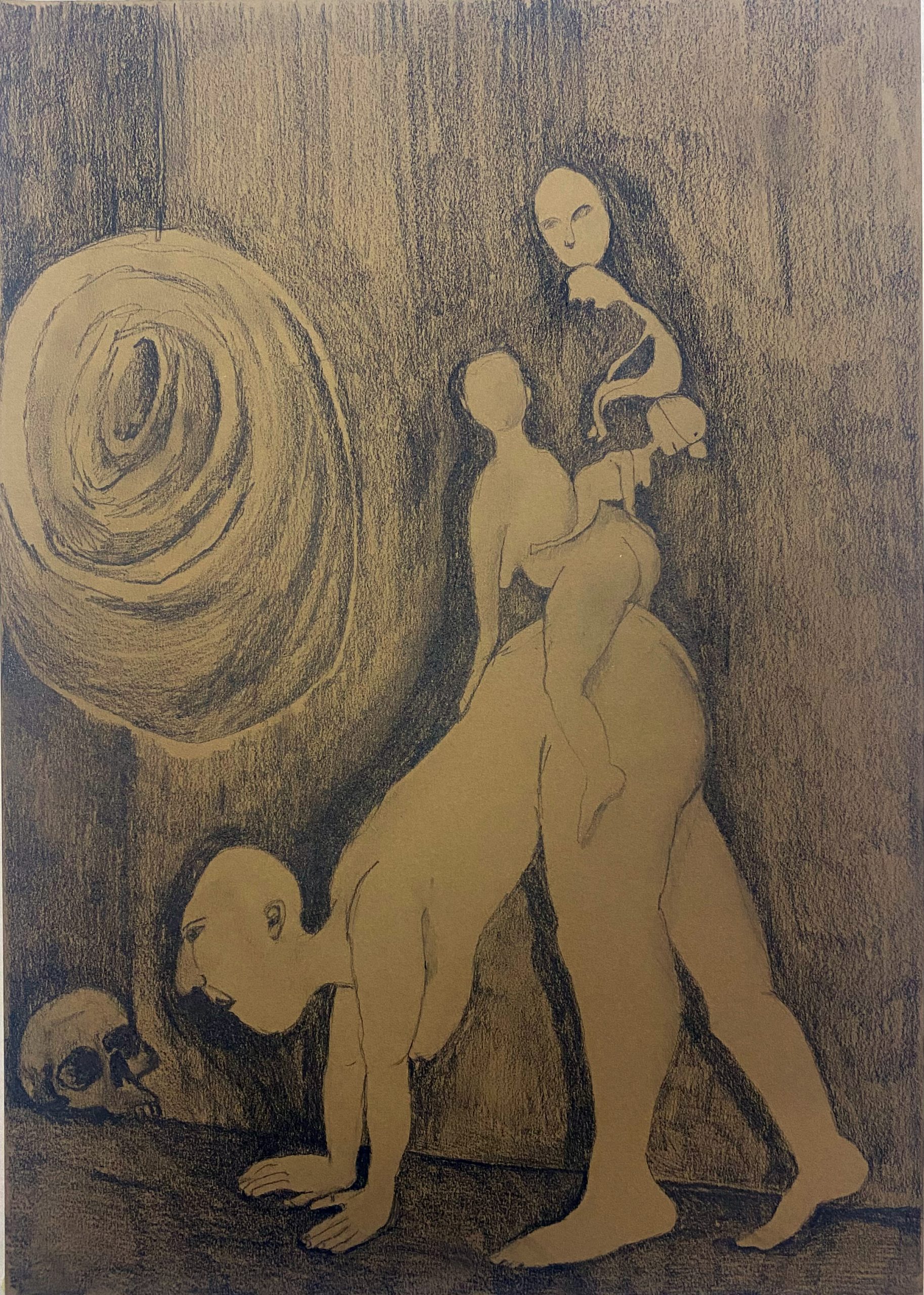 conversation In graphite drawings graphite on brown paper, series of 6 drawings, 30X42 cm December 30, 2024