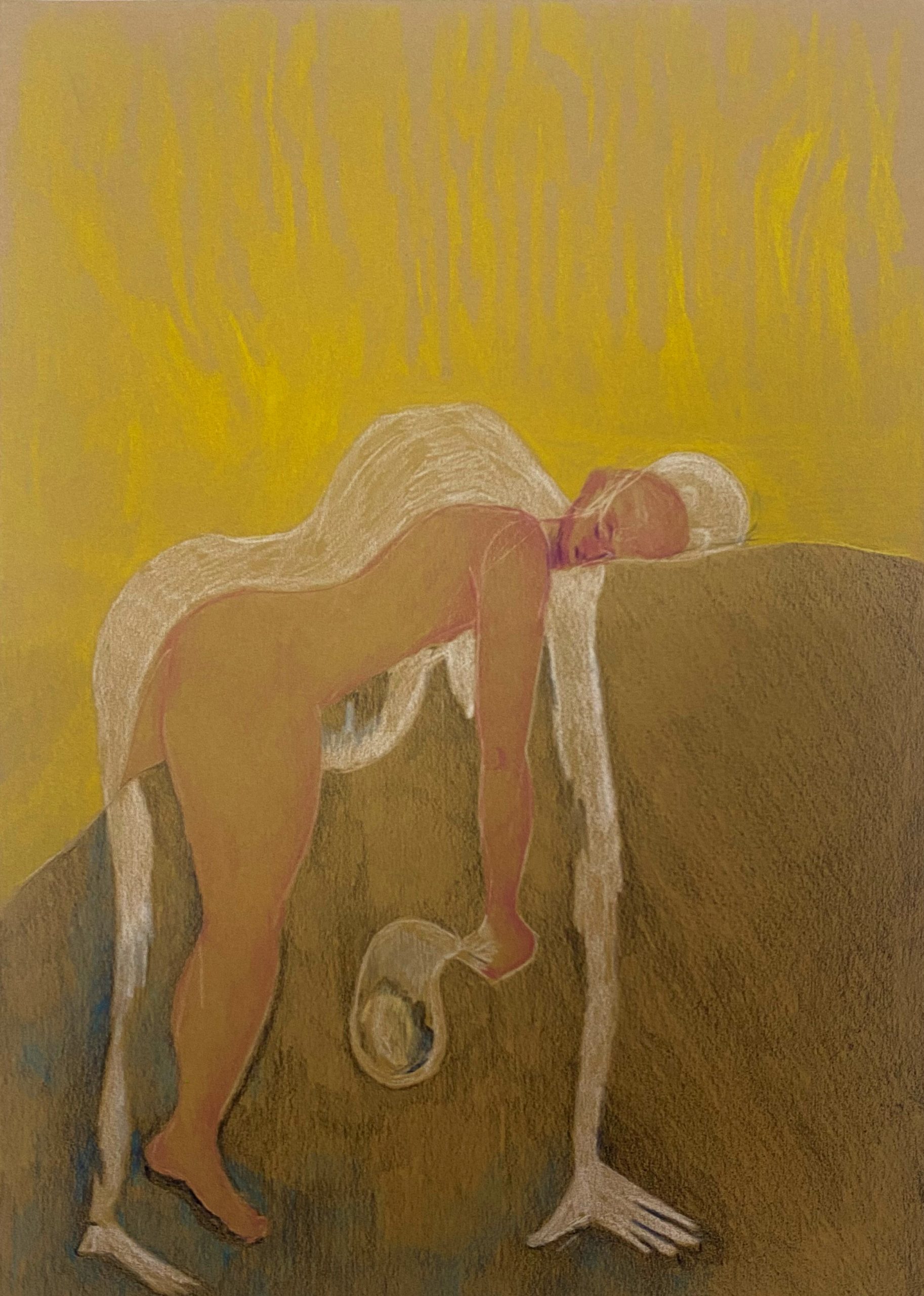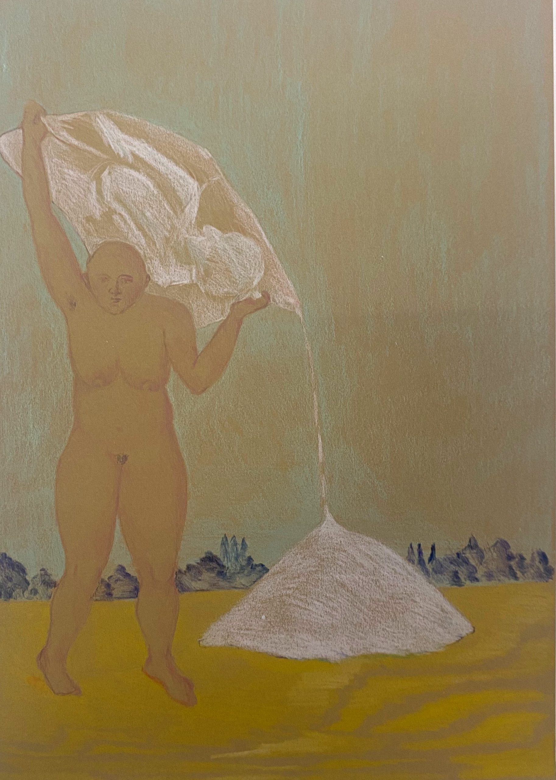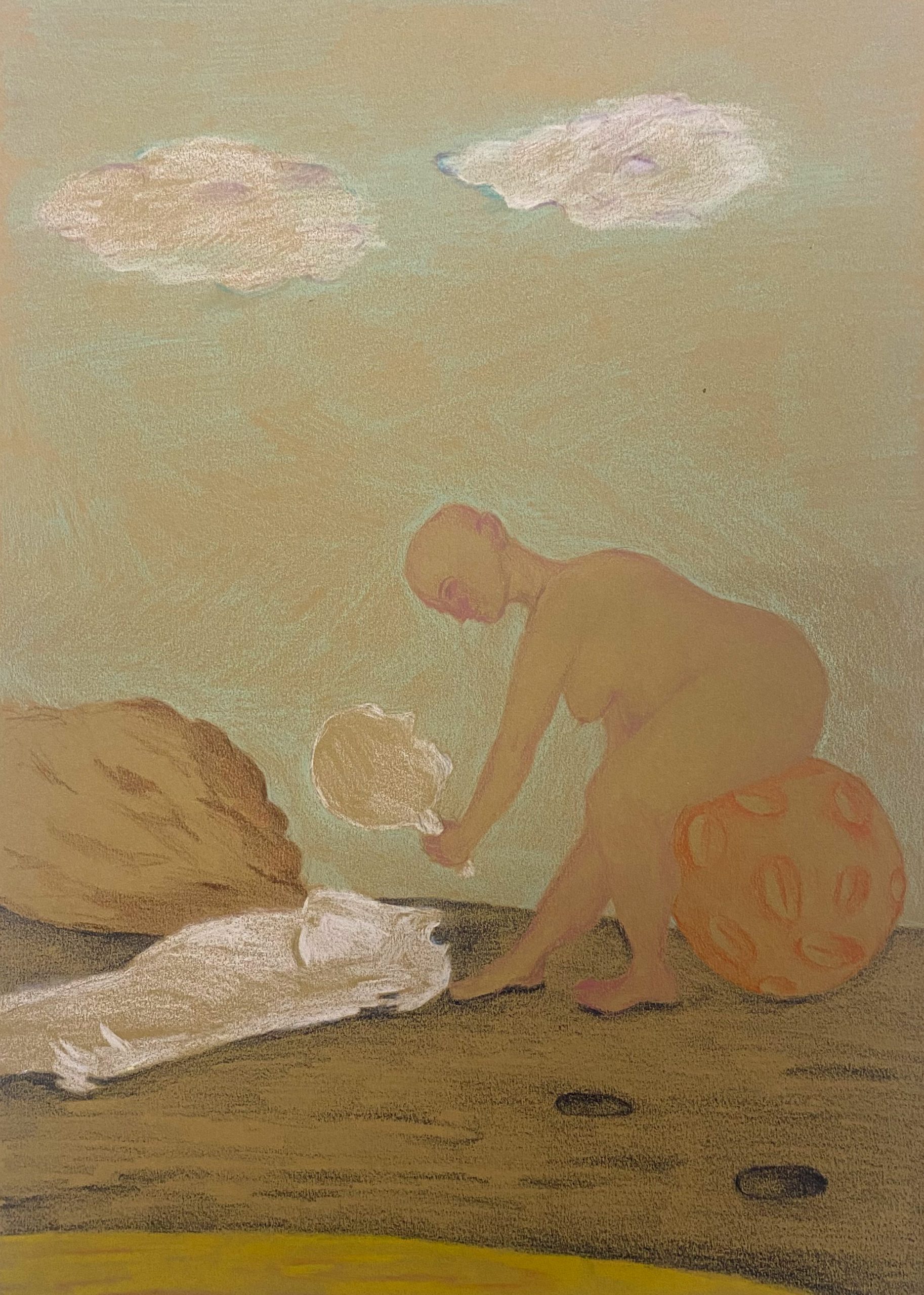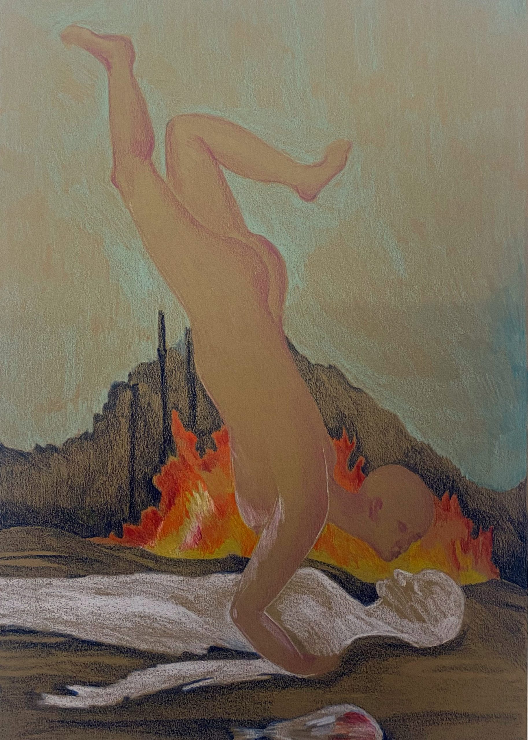 colored pencil on brown paper, 30×42 cm
