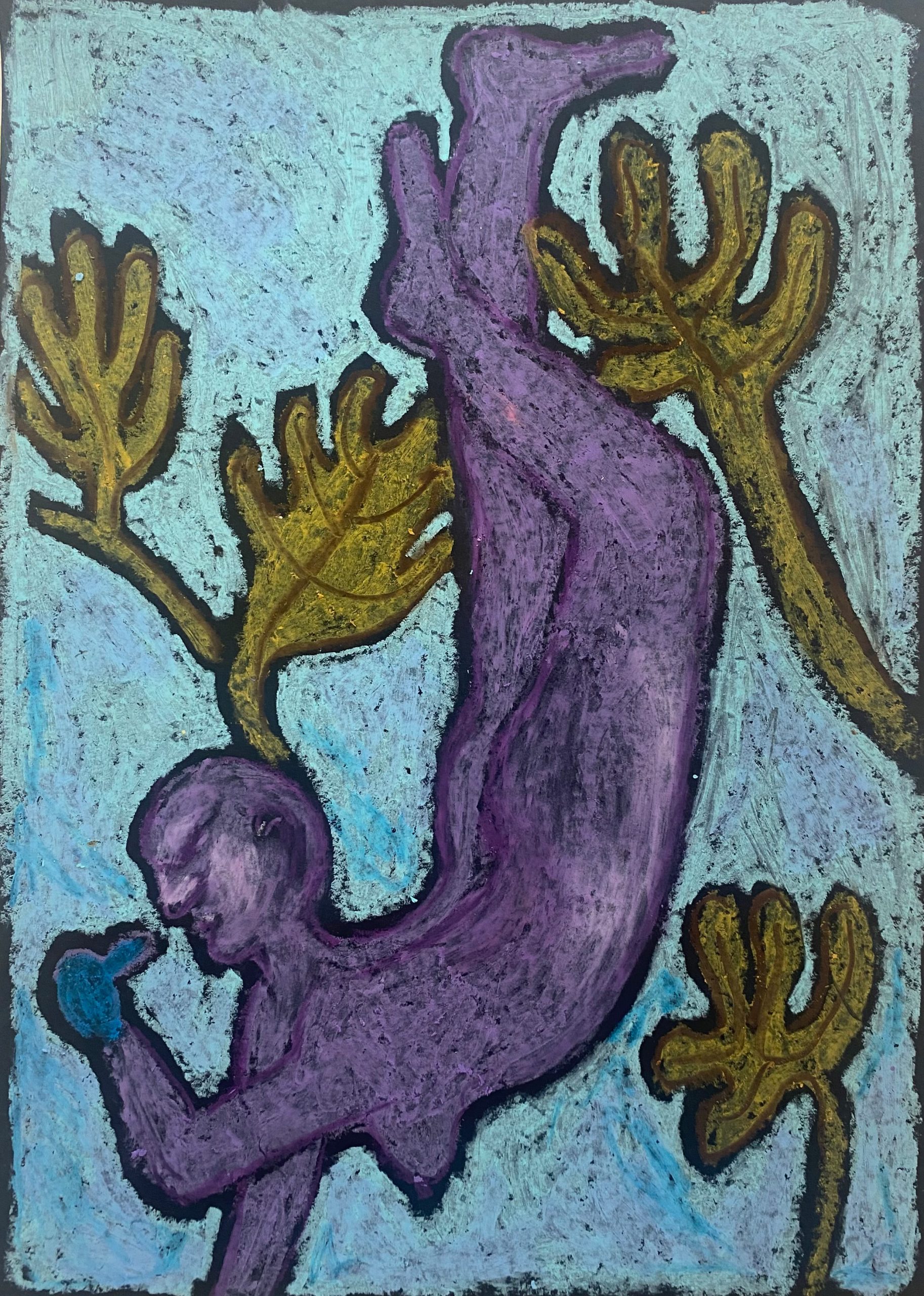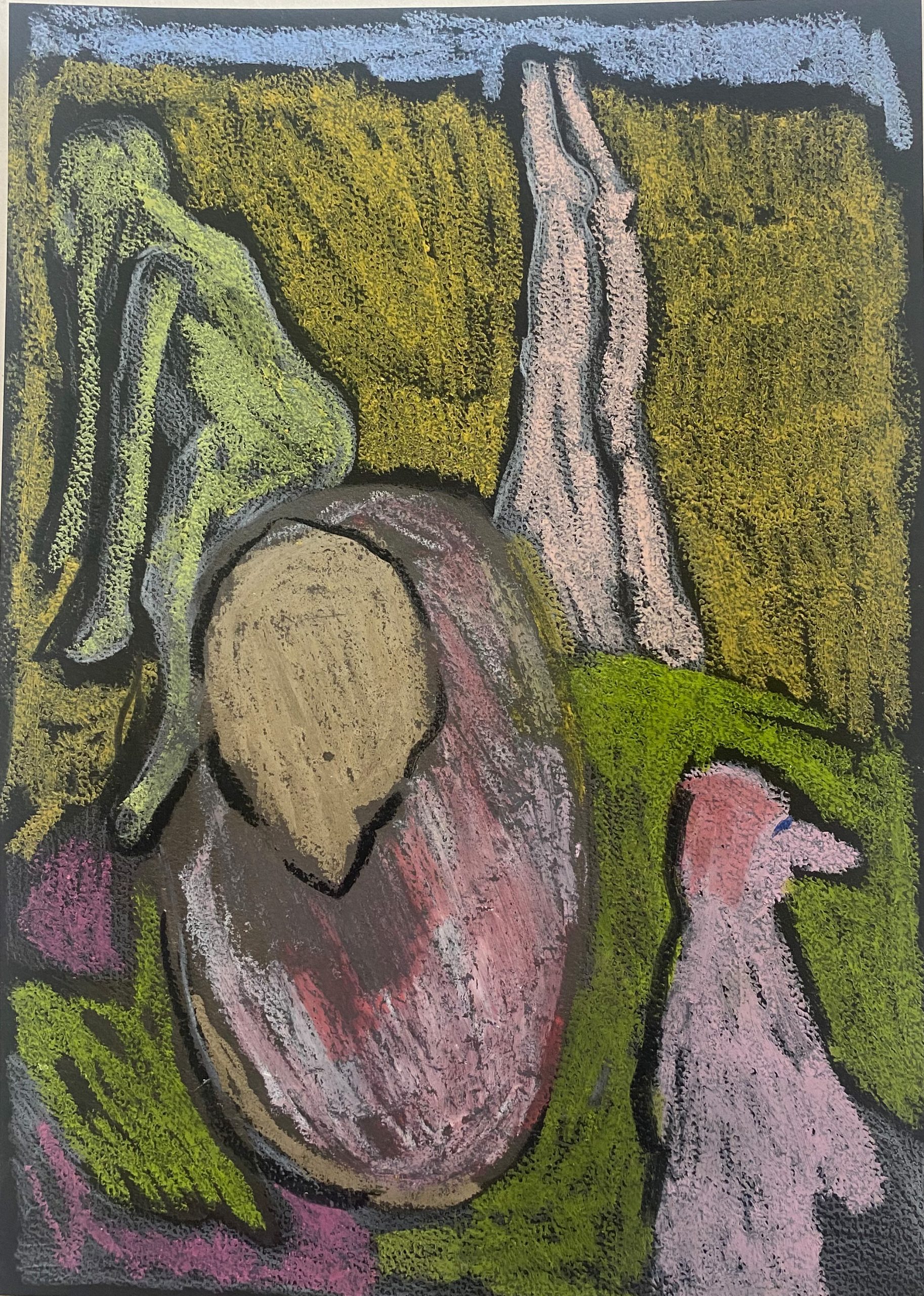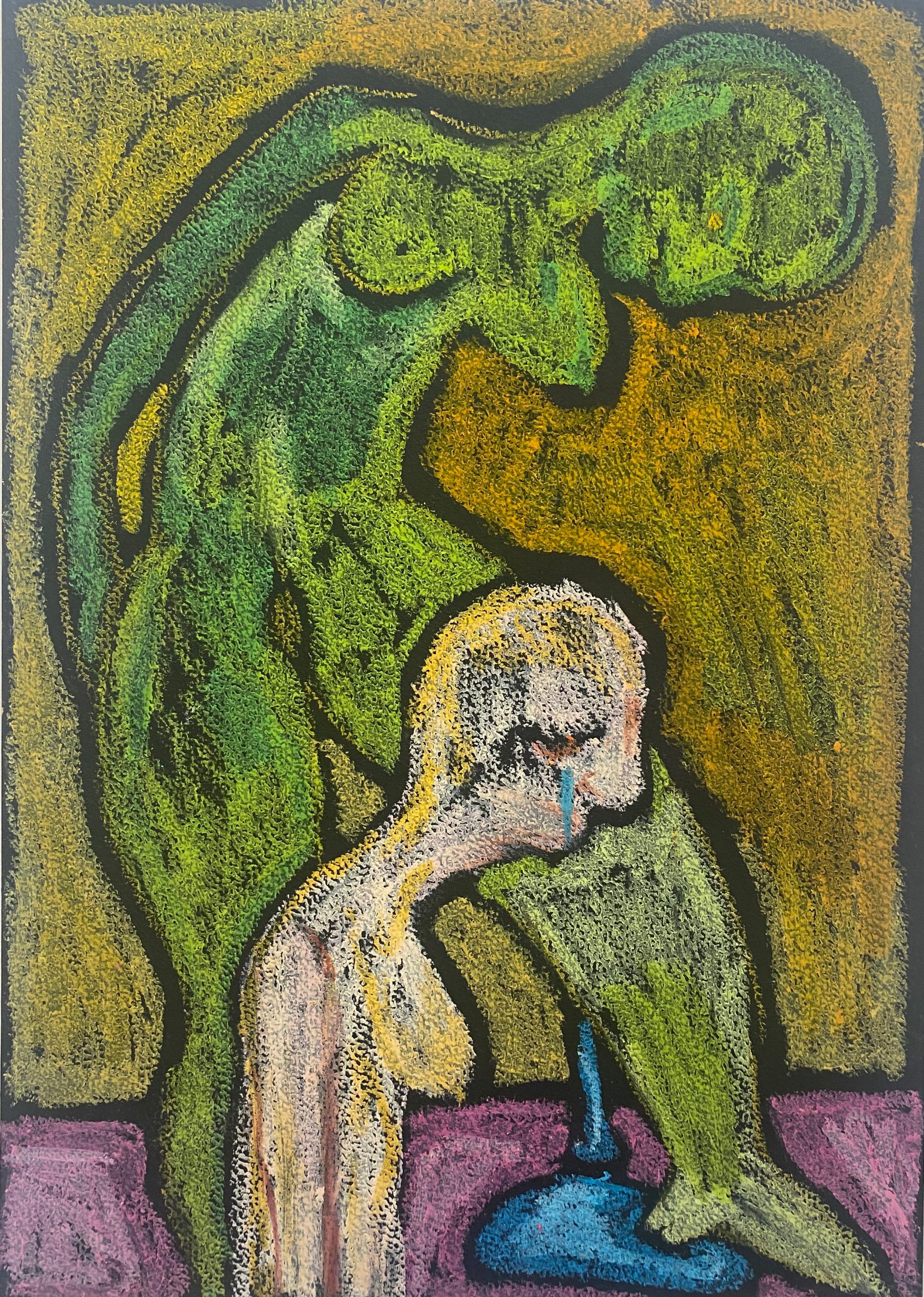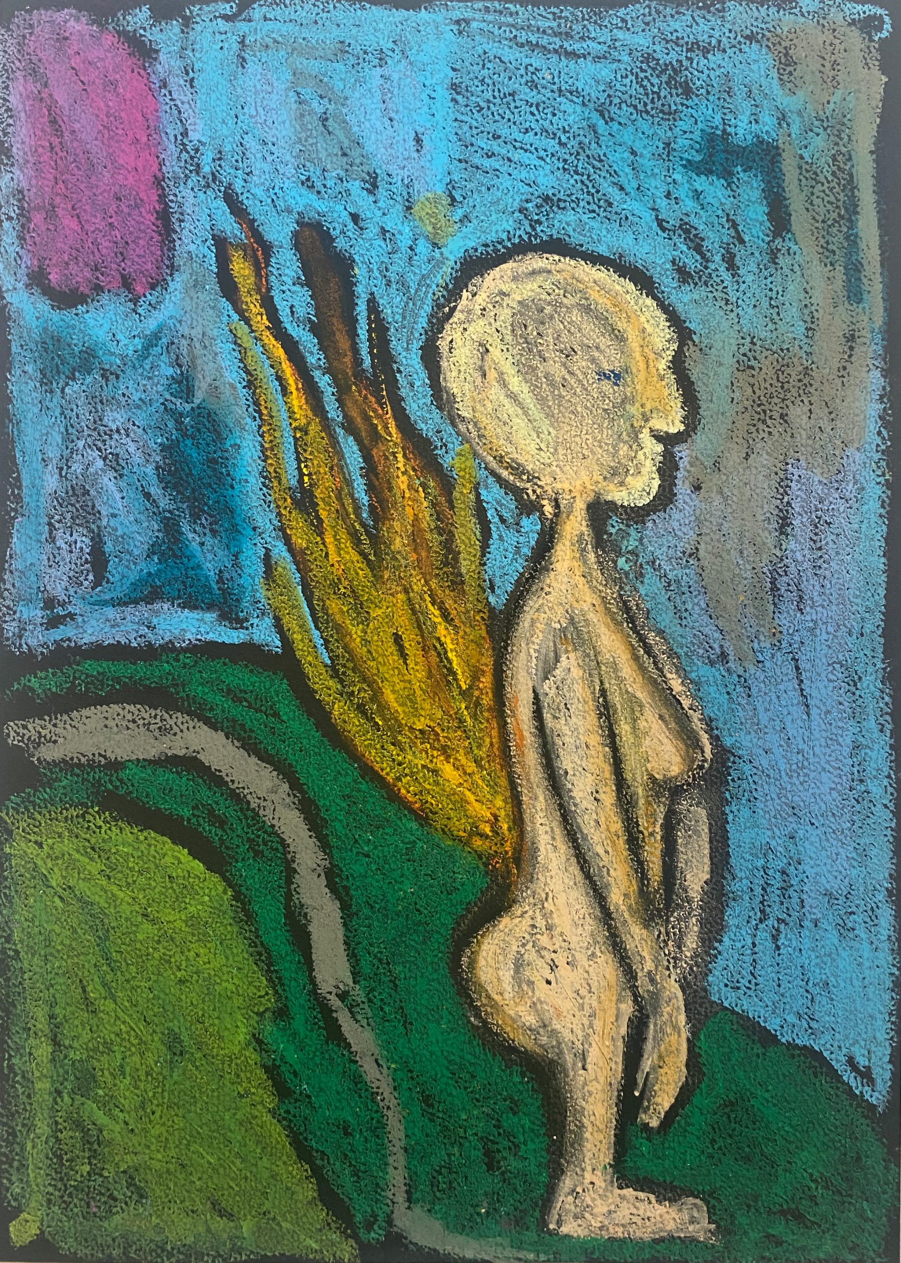 oil pastel on black black paper, 21×29 cm