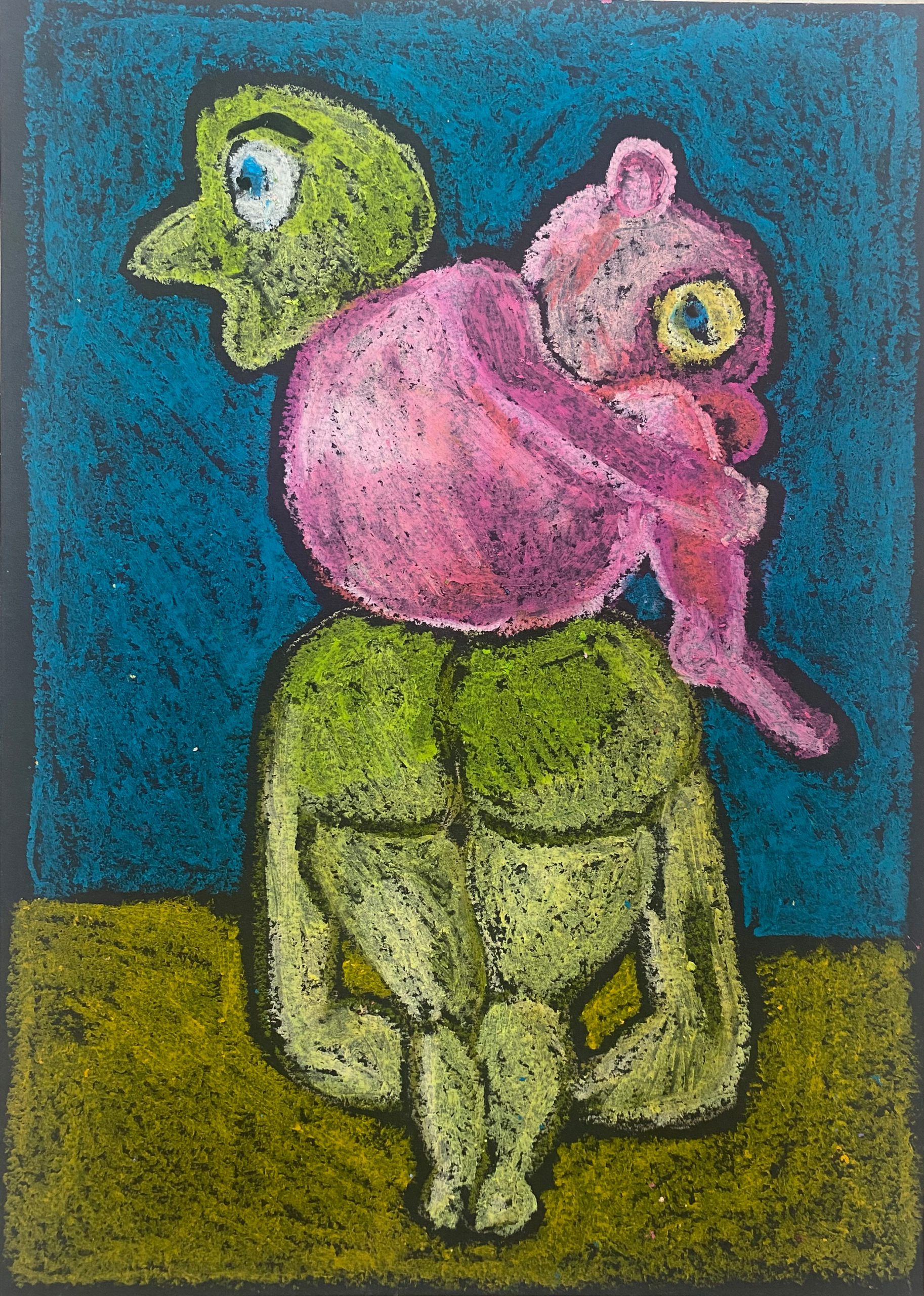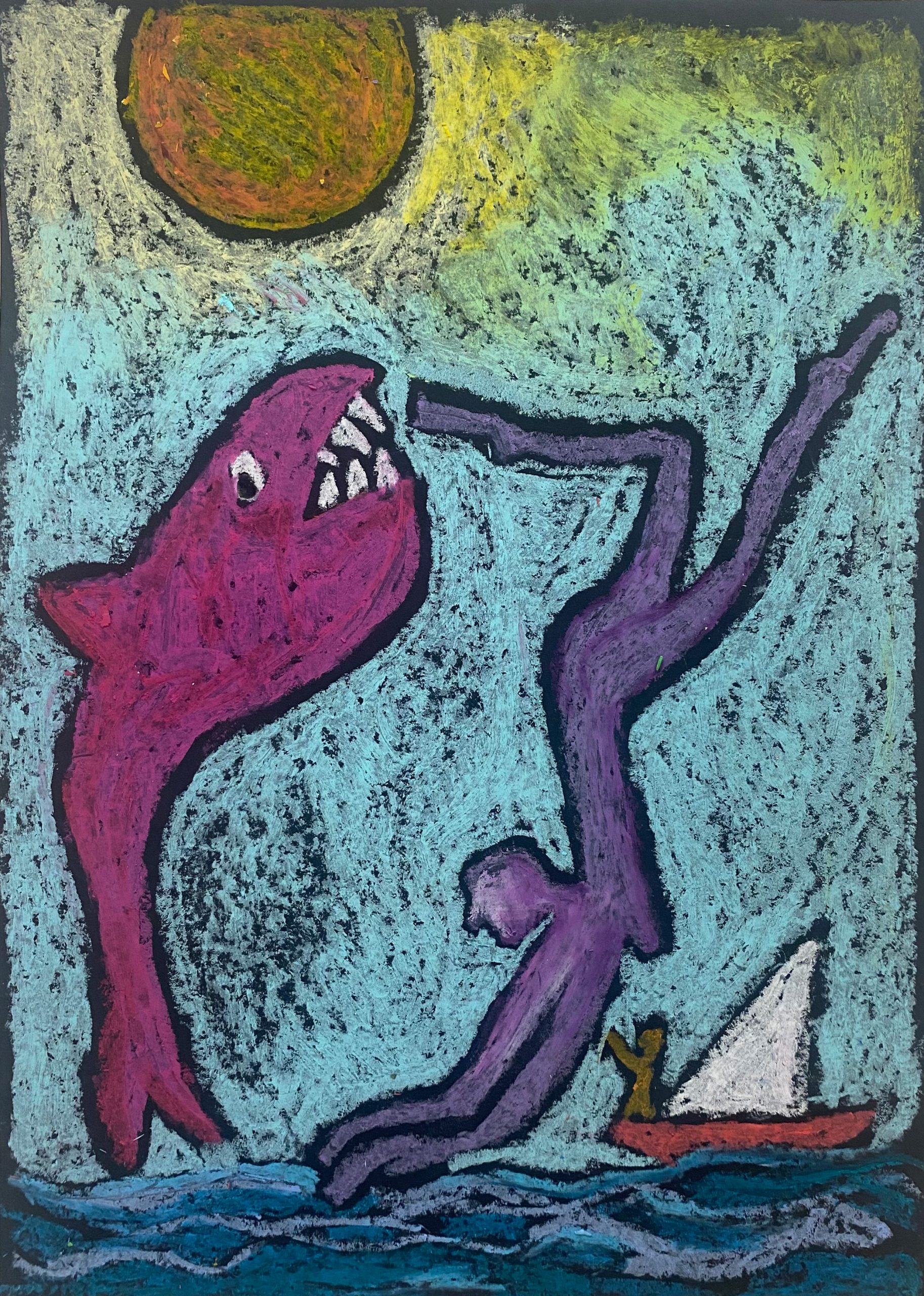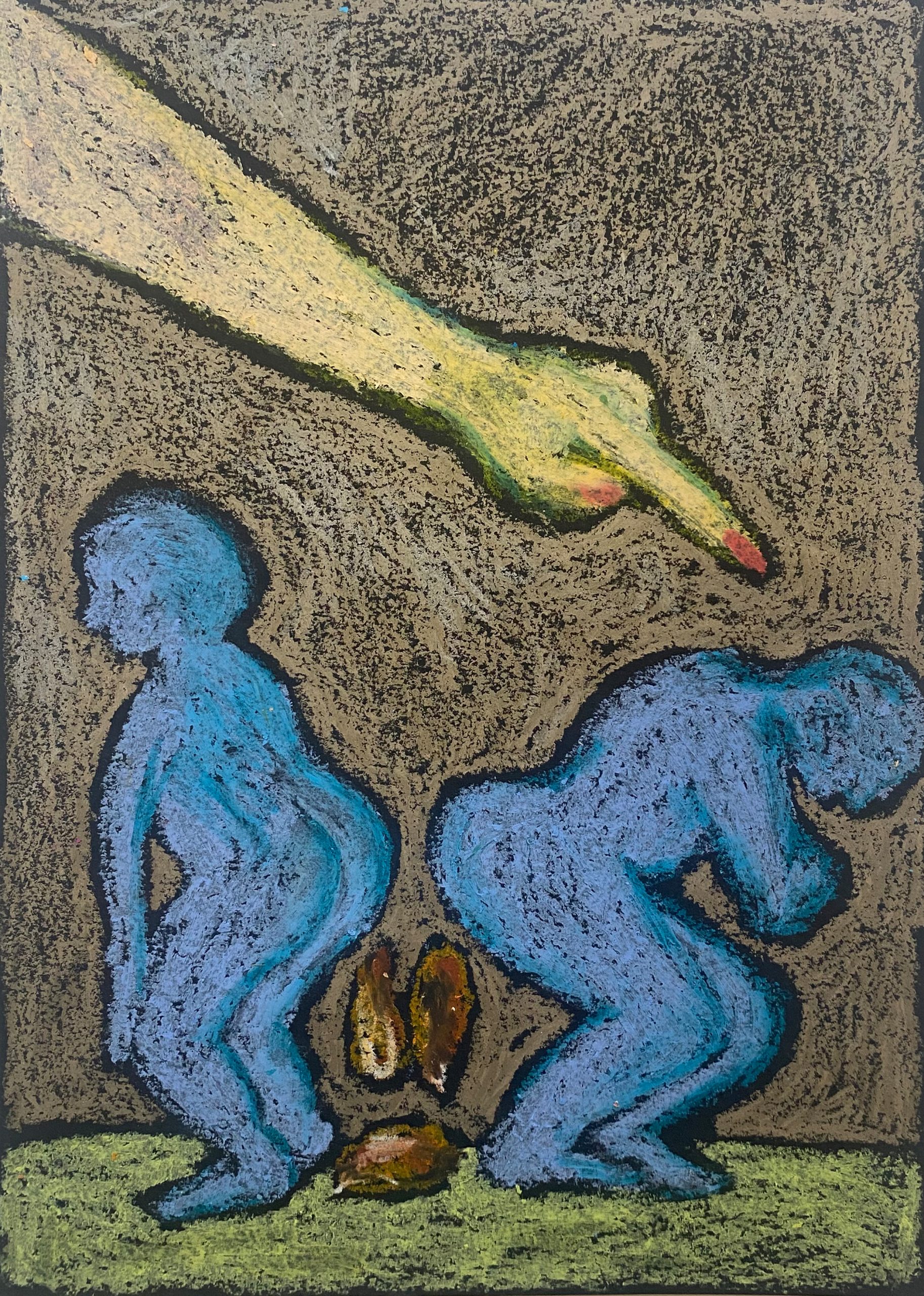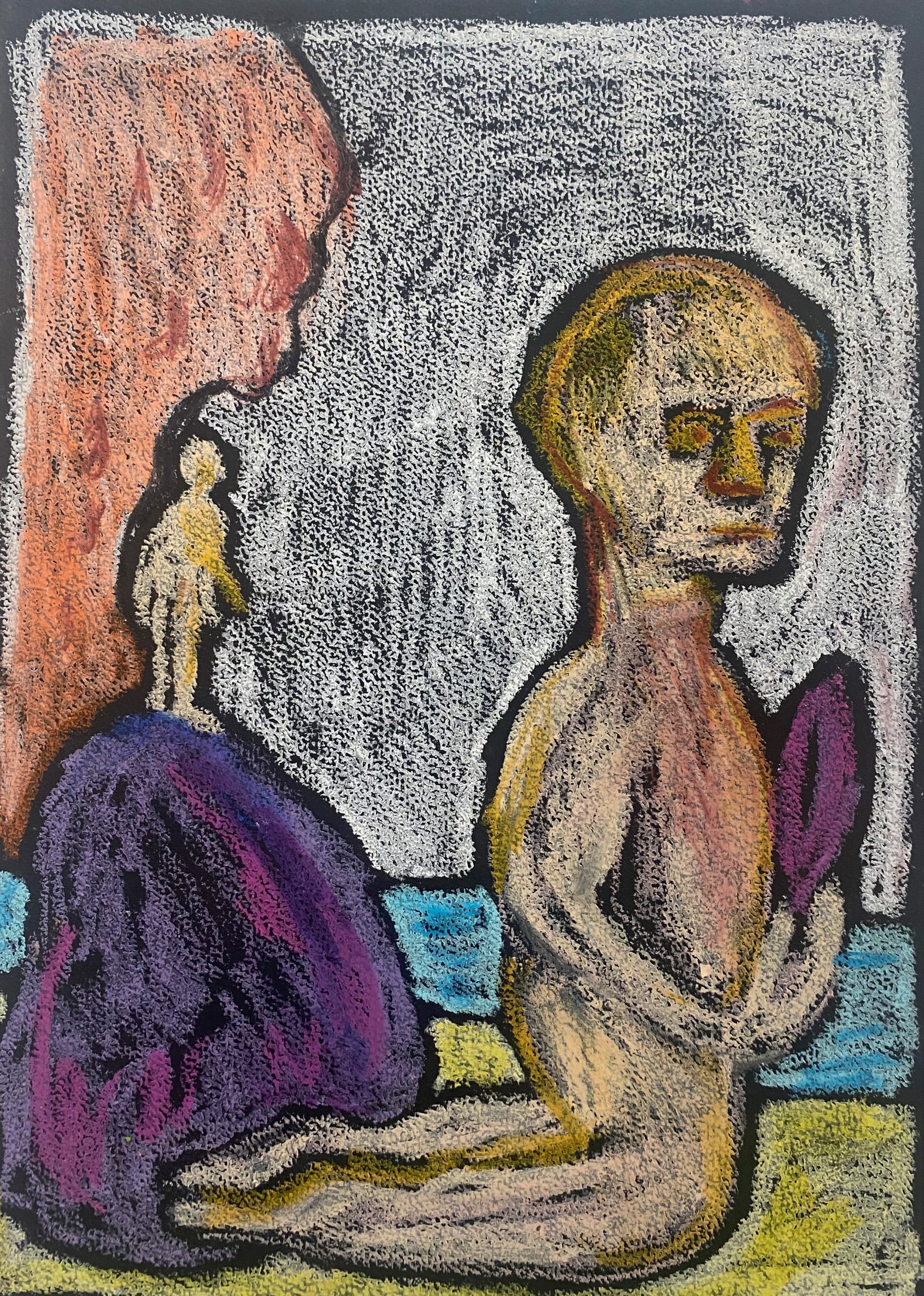oil pastel on black black paper, 21×29 cm