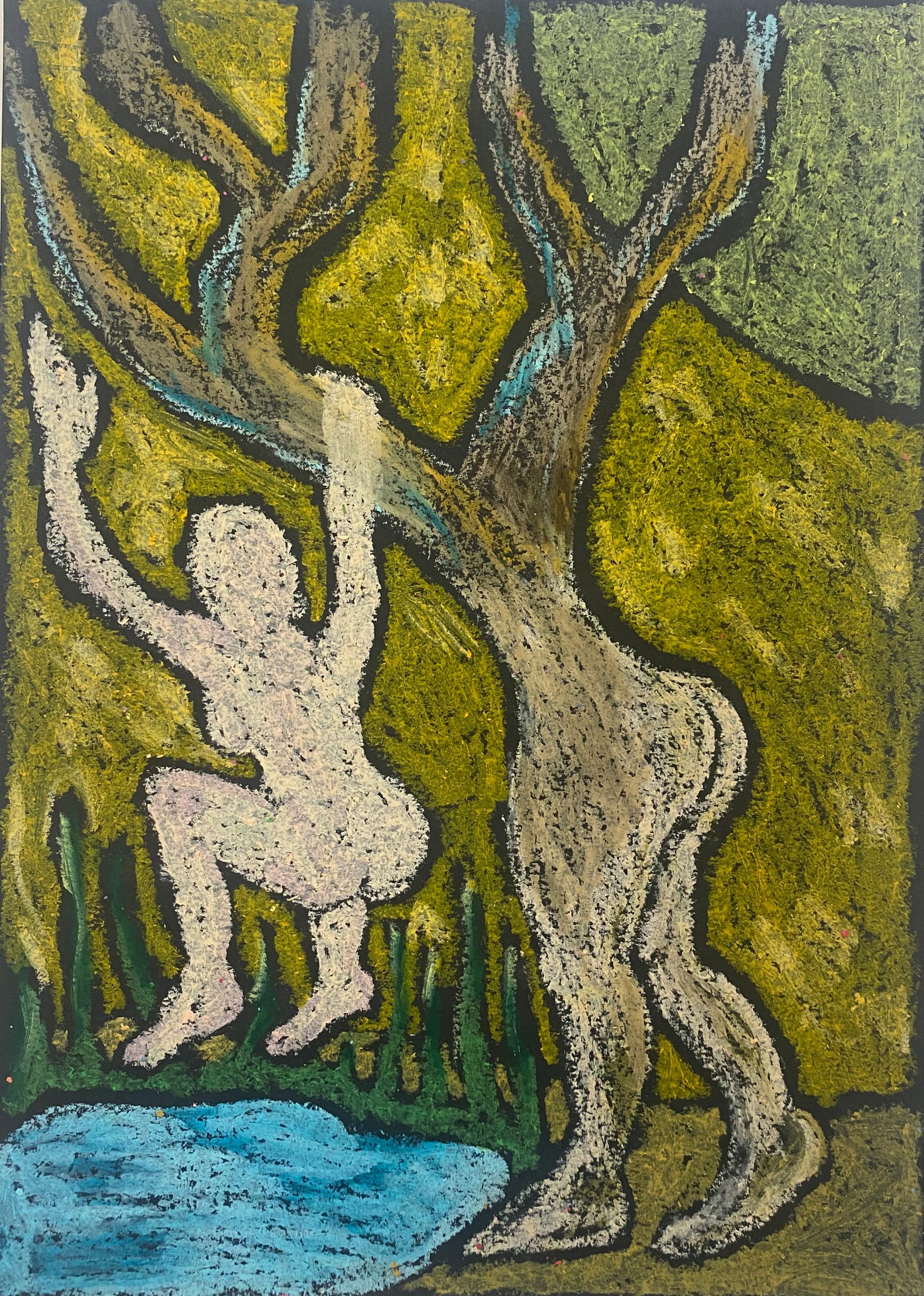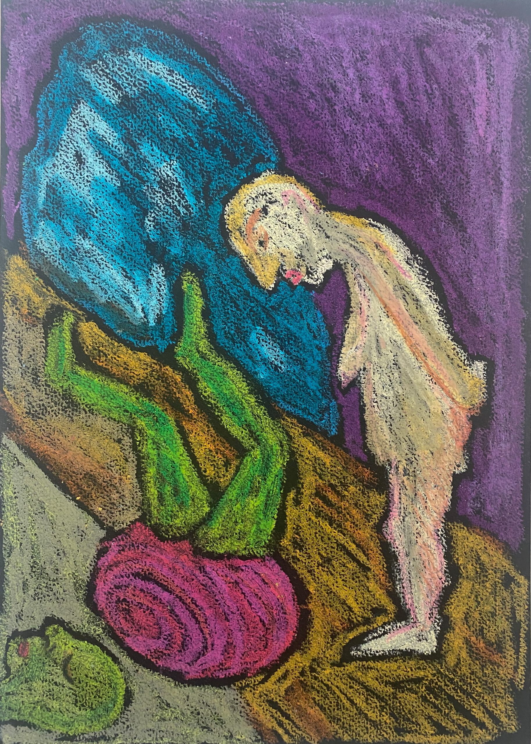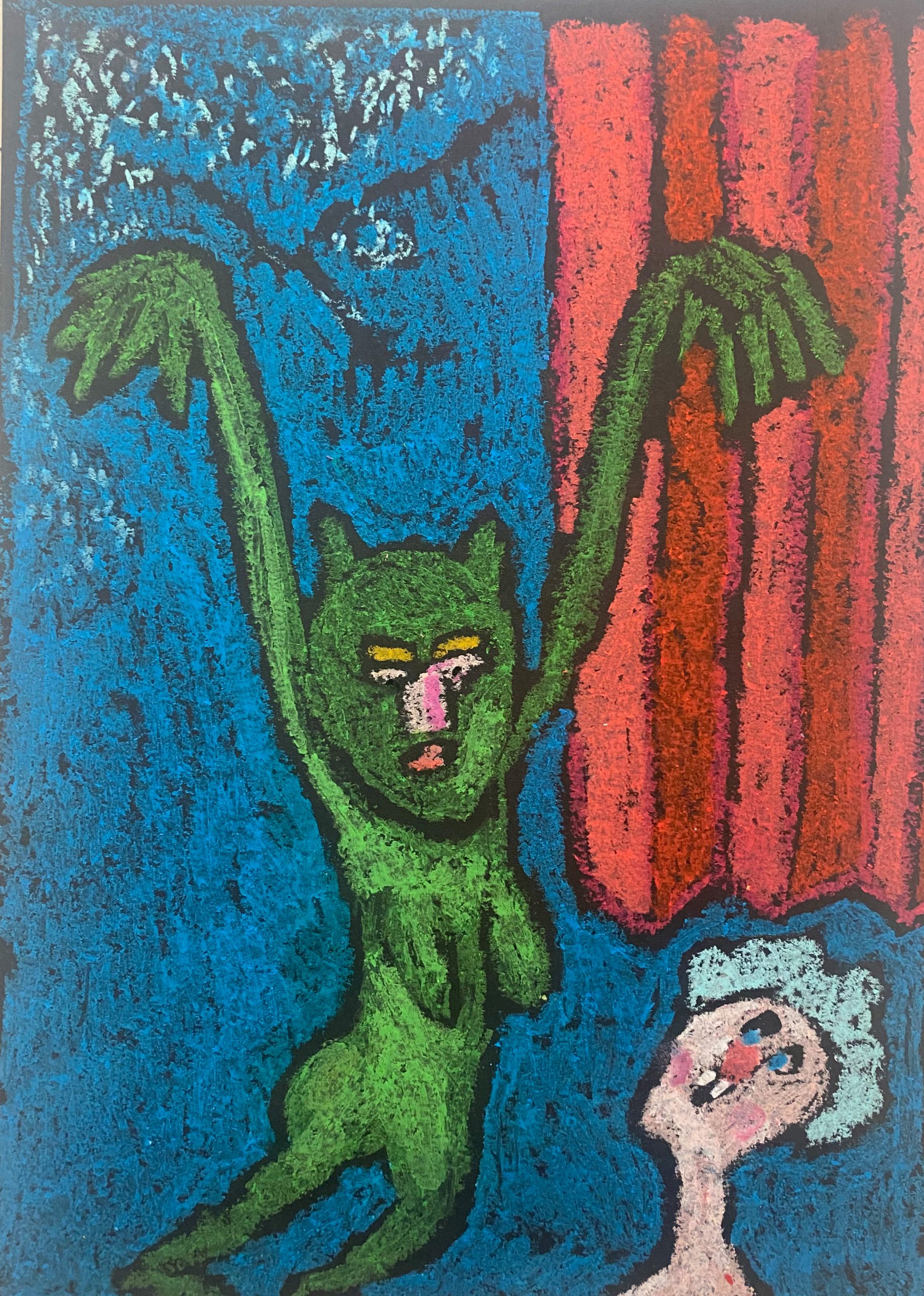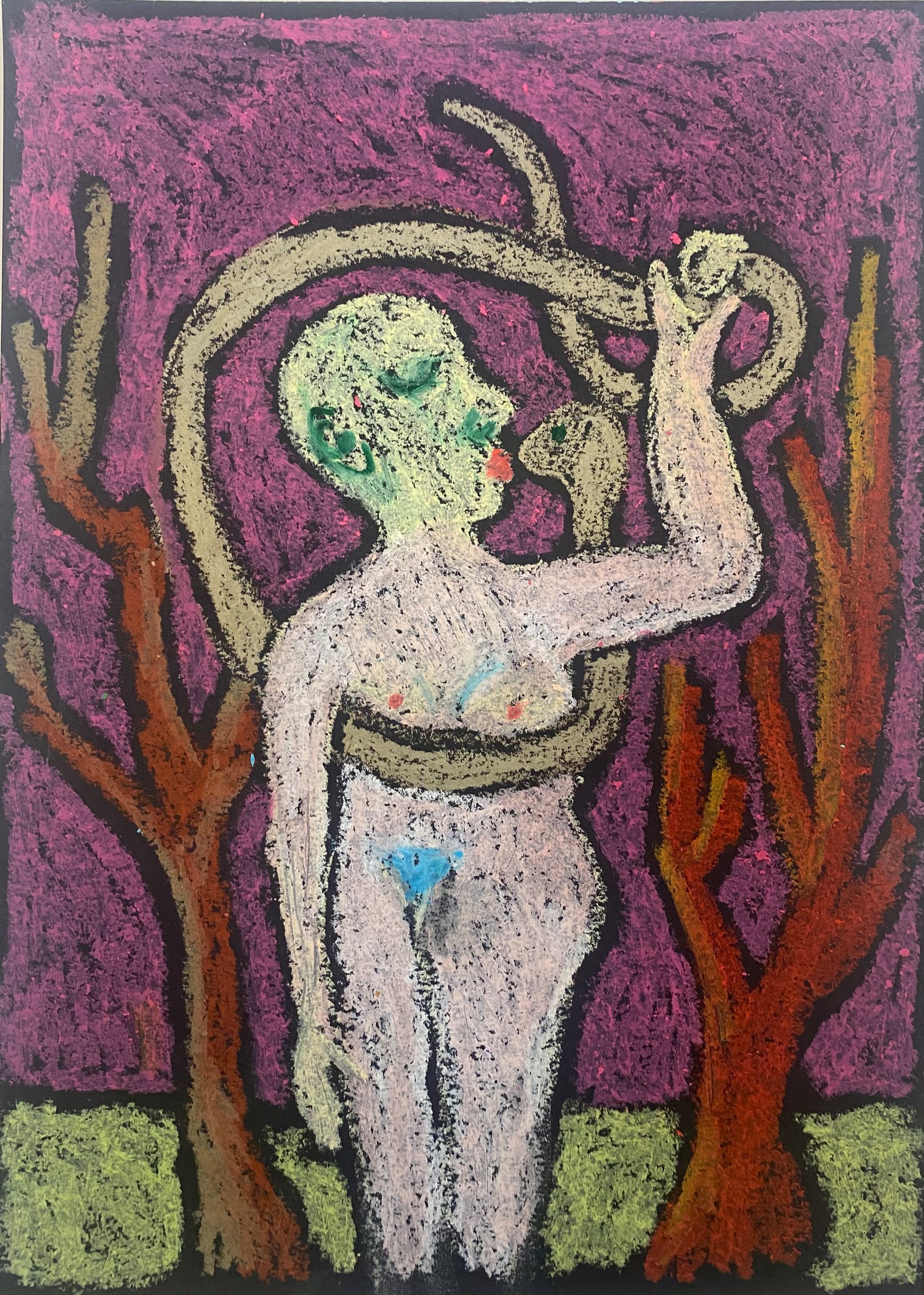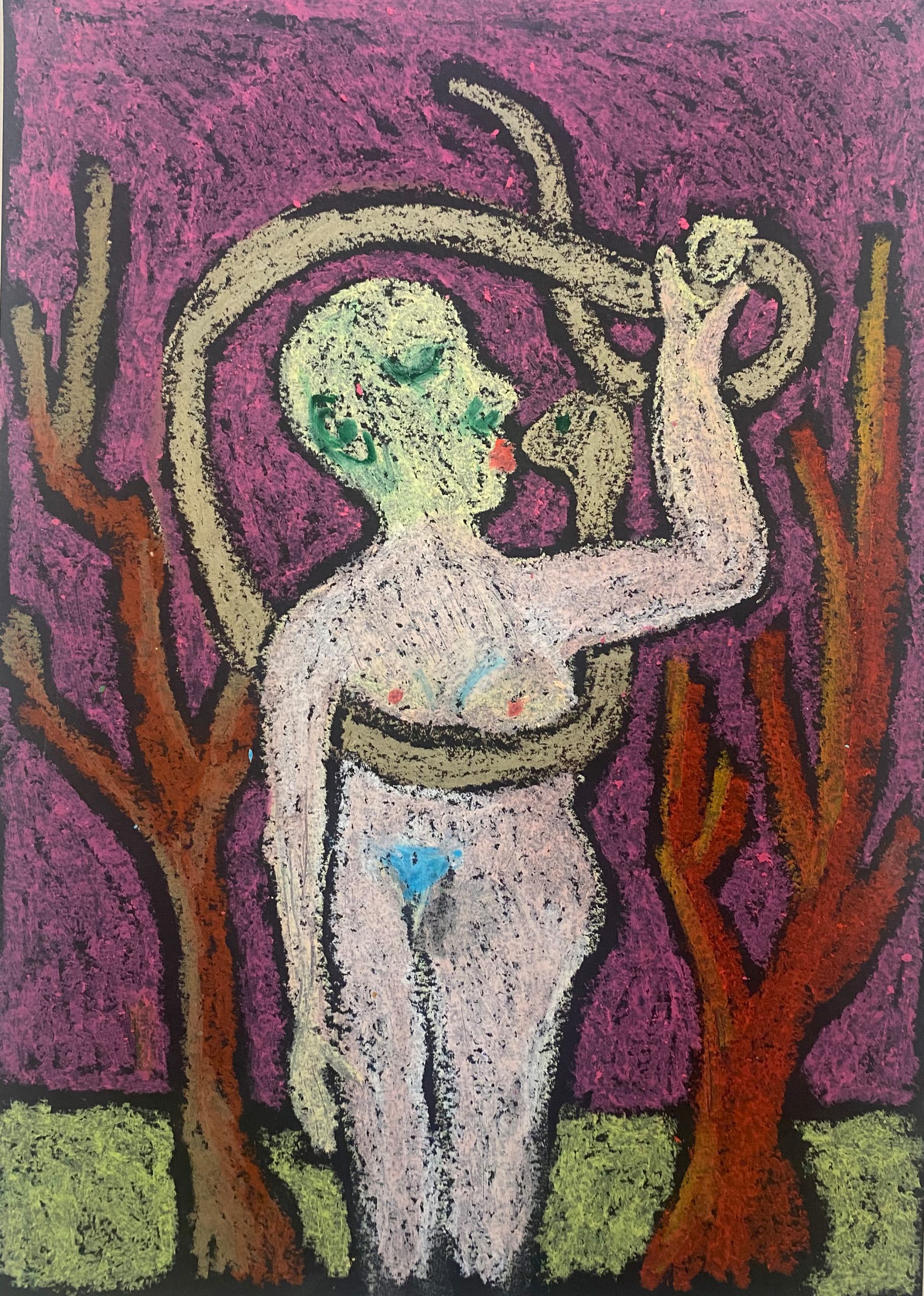 oil pastel on black black paper, 21×29 cm