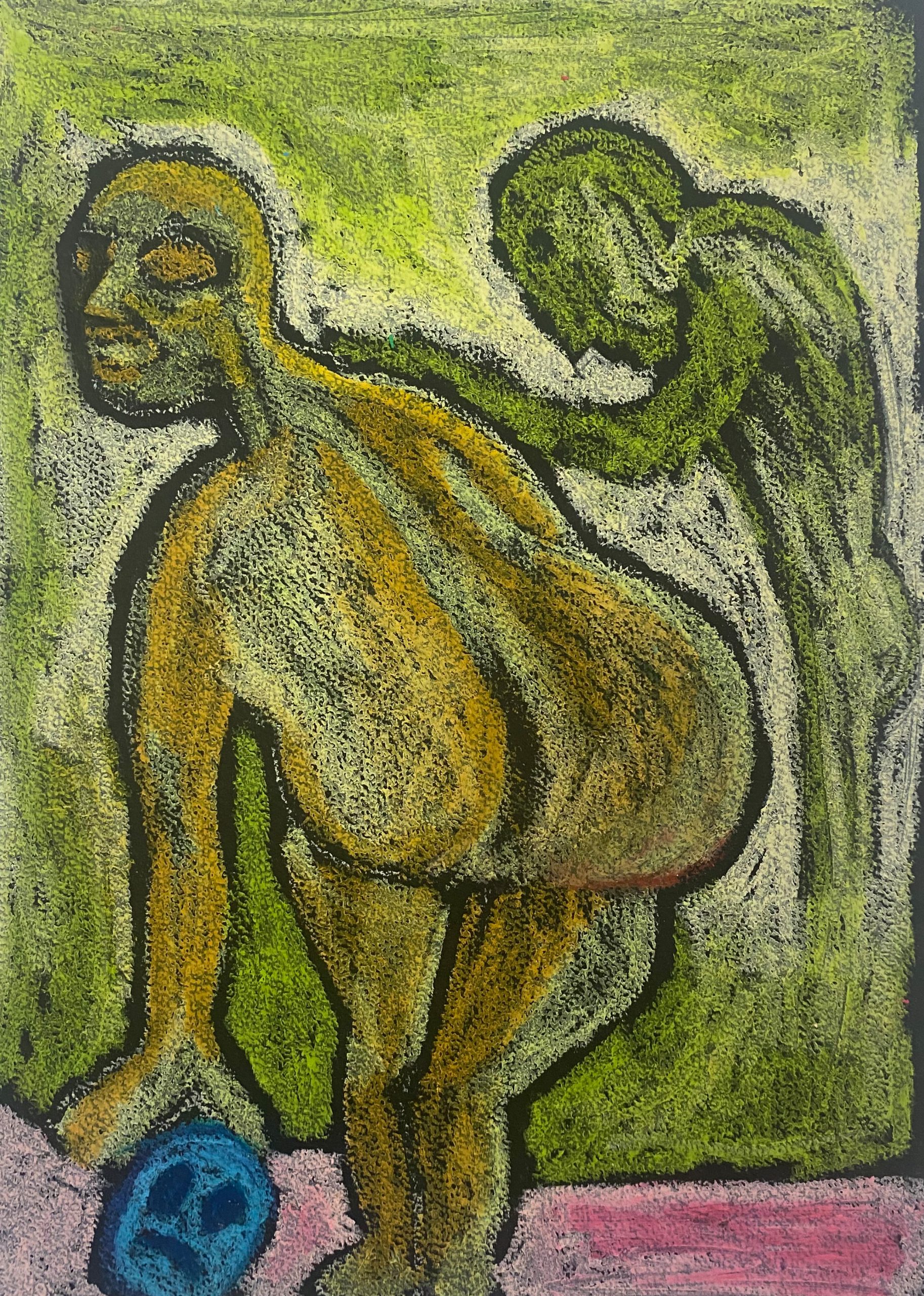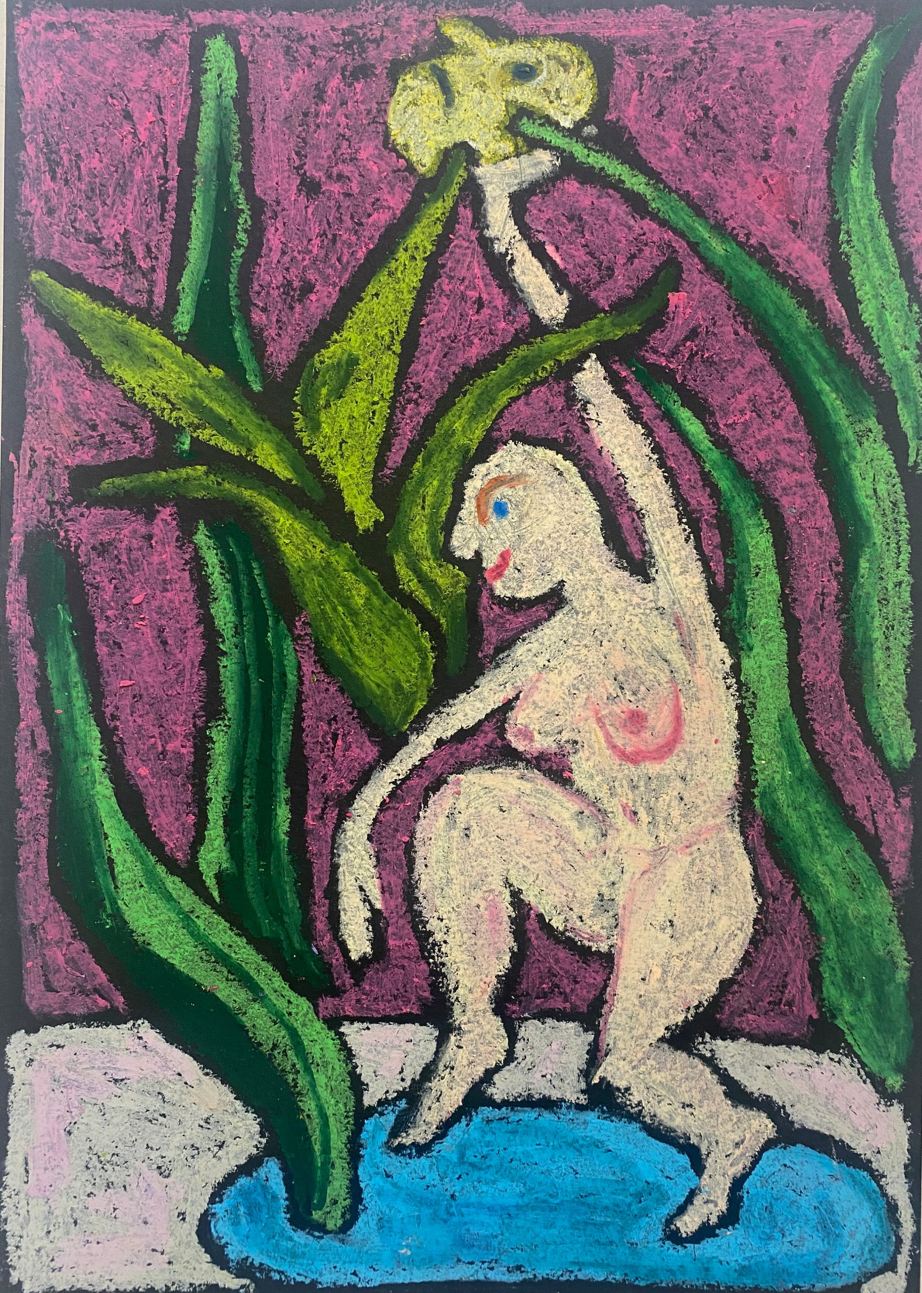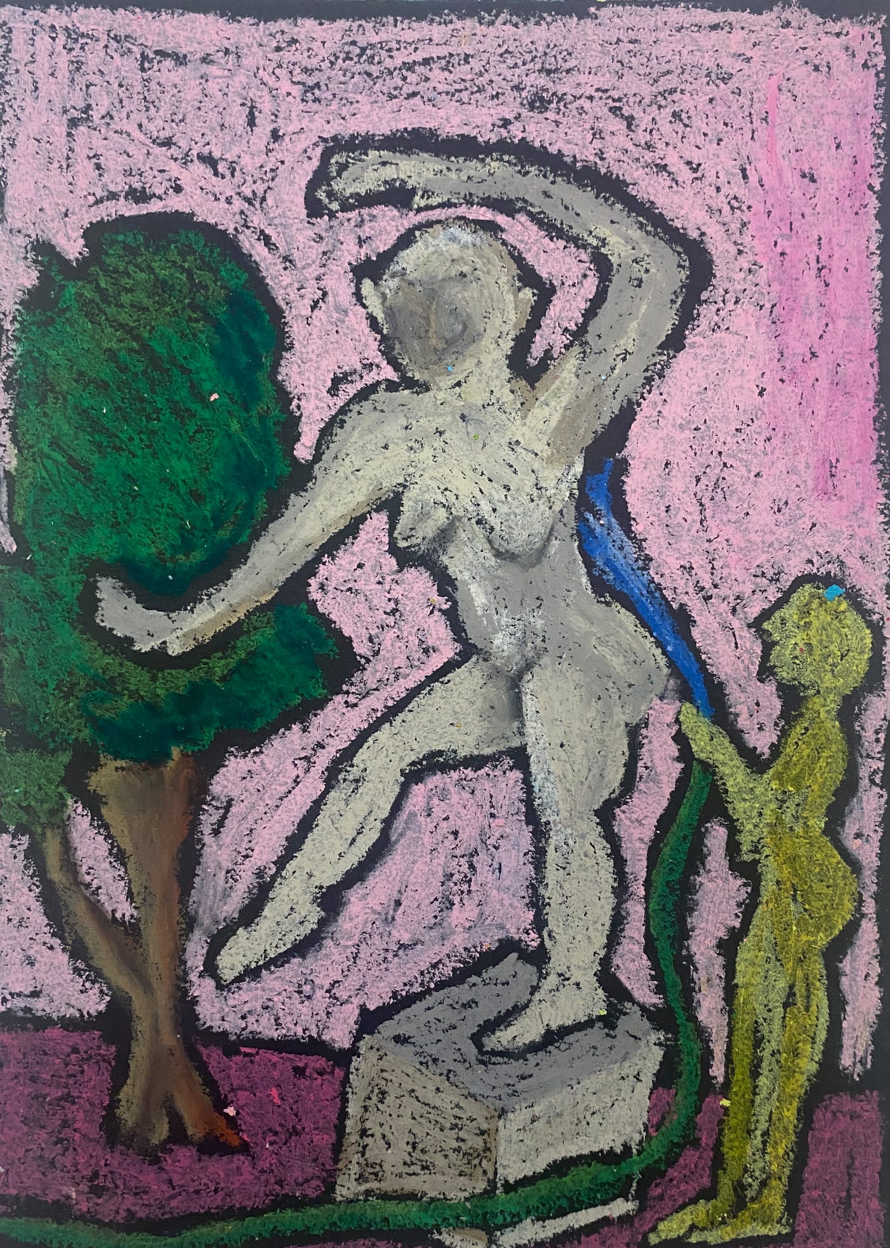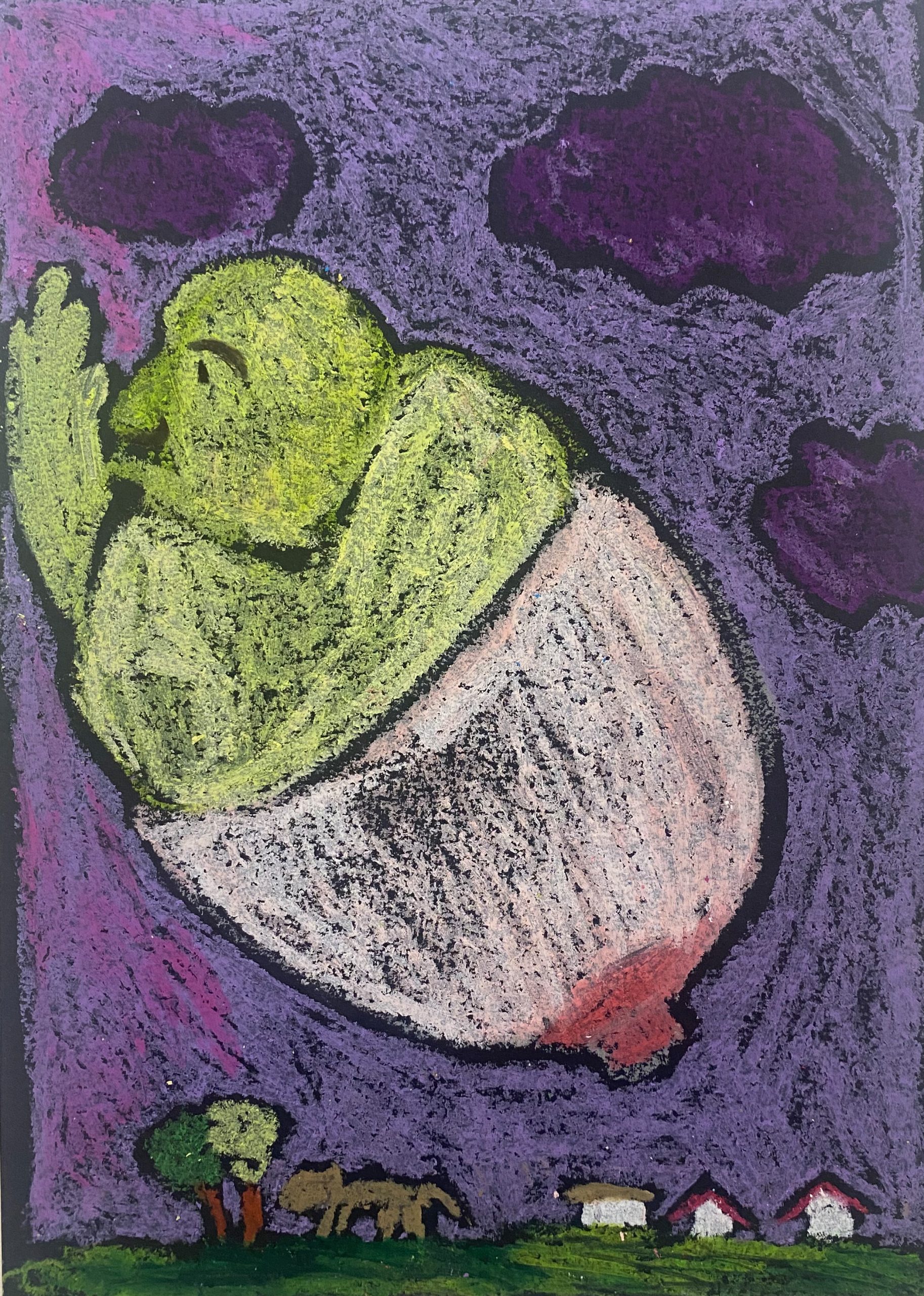 oil pastel on black black paper, 21×29 cm