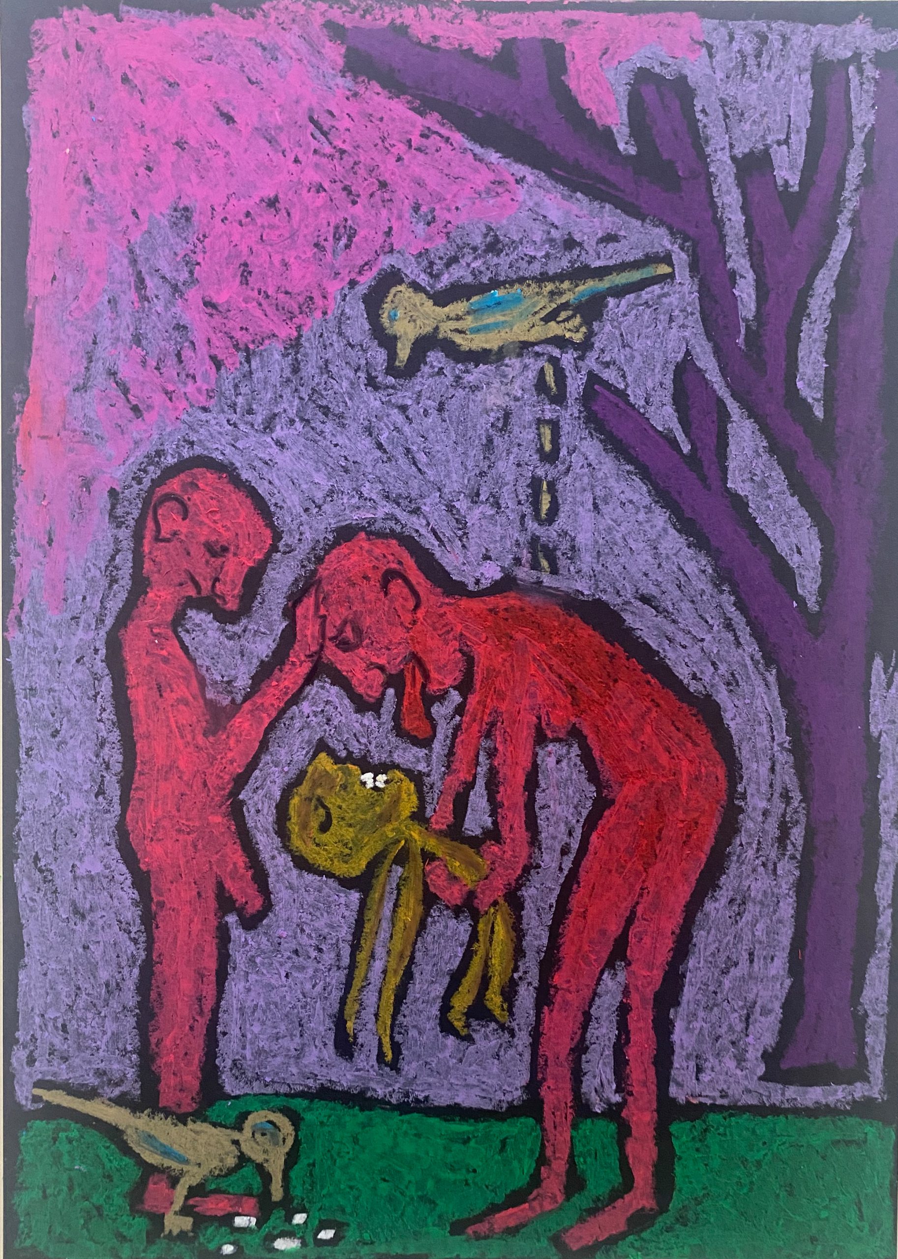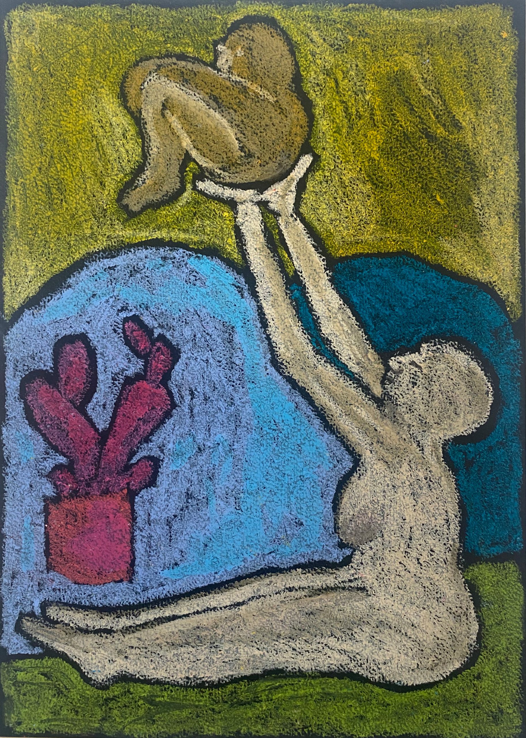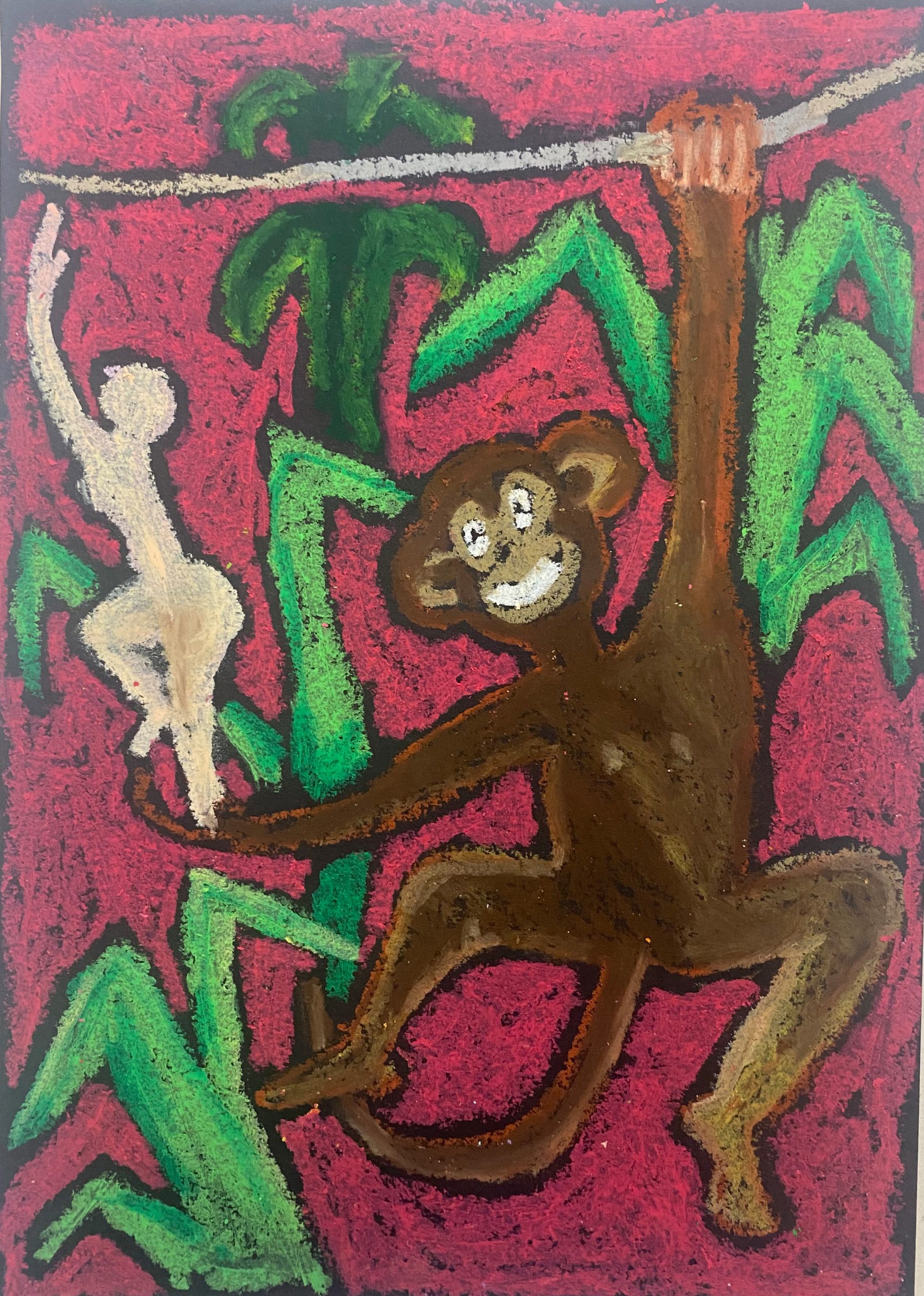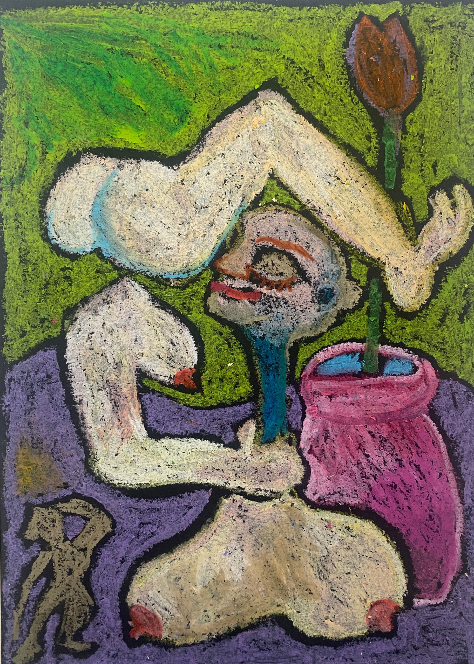 oil pastel on black black paper, 21×29 cm